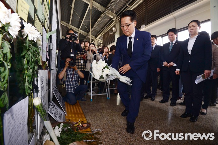 | △ 구의역 사건장소 방문해 헌화하는 박지원 |