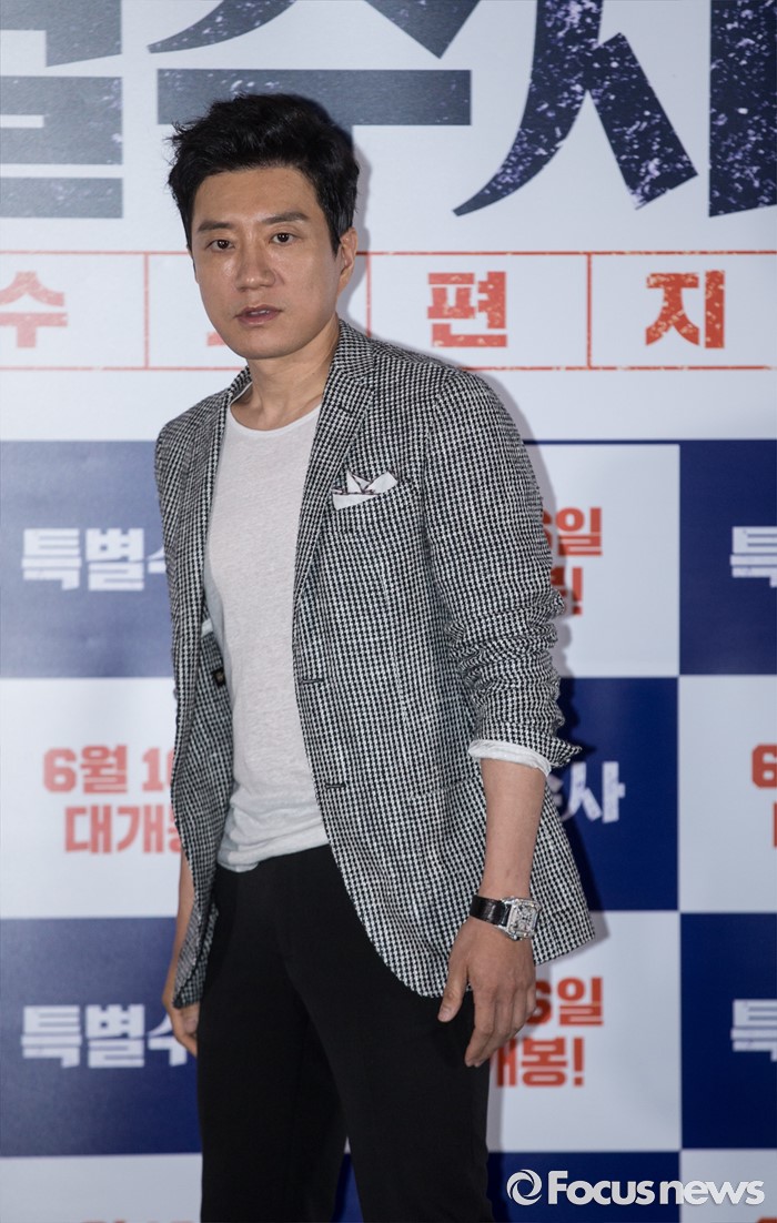 (서울=포커스뉴스) 31일 오후 서울 성동구 왕십리 CGV에서 열린 영화 ' 특별수사 : 사형수의 편지' 언론시사회에 참석한 배우 김명민이 포토타임을 갖고 있다.