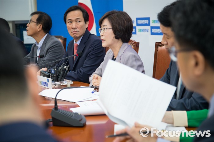 (서울=포커스뉴스) 우상호(왼쪽 두번째) 더불어민주당 원내대표와 김상희(왼쪽 세번째) 서민 주거 TF 단장이 1일 오전 서울 여의도 국회 원내대표실에서 서민주거TF 발족식을 하고 있다.
