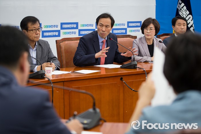 (서울=포커스뉴스) 우상호(가운데) 더불어민주당 원내대표가 1일 오전 서울 여의도 국회 원내대표실에서 열린 서민주거TF 발족식에서 모두발언을 하고 있다.