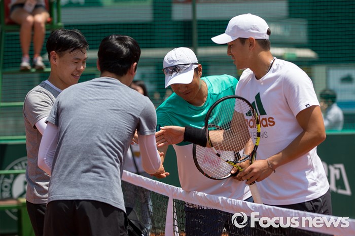 (서울=포커스뉴스) 이형택 전 테니스 국가대표가 1일 오후 서울 중구 서울광장에서 열린 '롤랑가로스(프랑스오픈) 인더시티'에서 대학생들과 스페셜 매치 시합을 마친 뒤 악수 하고 있다.