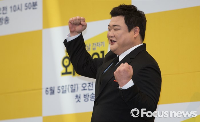(서울=포커스뉴스) 2일 오전 서울 영등포구 KBS신관 웨딩홀에서 열린 KBS새 예능 프로그램 '어느날 갑자기 외.개.인' 제작발표회에 참석한 개그맨 김준현이 포토타임을 갖고 있다.