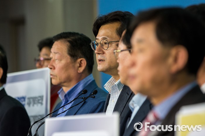 (서울=포커스뉴스) 홍익표 더불어민주당 의원이 2일 오후 서울 여의도 국회에서 열린 '남북경협기업 생존대책마련 촉구 기자회견'에 참석해 정부에 개성공단 재개 및 금강산 관광 재개 등을 촉구 하고 있다.