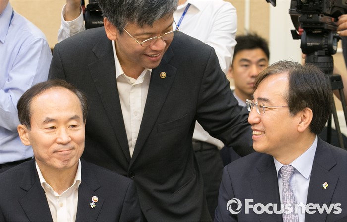 | △ 인사하는 윤성규-최상목-이석준 |