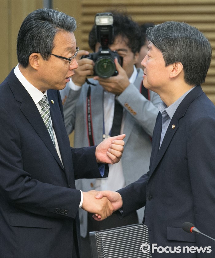 | △ 인사하는 안철수-김성식 |
