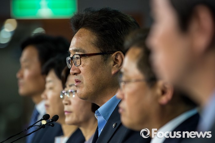 (서울=포커스뉴스) 우원식 더불어민주당 을지로위원회 위원장을 비롯한 소속 의원들이 2일 오후 서울 여의도 국회에서 구의역 스크린도어 간접고용 노동자 사망사고 재발방지 법안발의 관련 기자회견을 하고 있다.