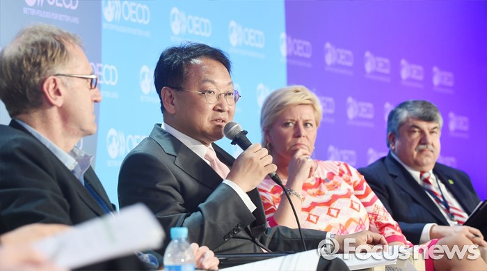 (서울=포커스뉴스) 유일호 부총리 겸 기획재정부 장관이 1일 프랑스 파리 OECD에서 열린 '2016년 OECD 각료이사회'에 참석, 고위급 패널토론에서 주제인 '성장을 위한 새로운 과제'와 관련 토론하고 있다. <사진제공=기획재정부>