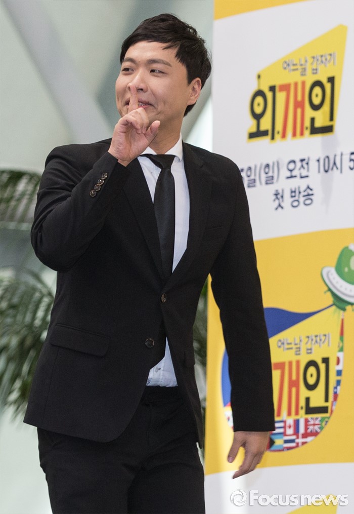 (서울=포커스뉴스) 2일 오전 서울 영등포구 KBS신관 웨딩홀에서 열린 KBS새 예능 프로그램 '어느날 갑자기 외.개.인' 제작발표회에 참석한 개그맨 이상준이 포토타임을 위해 이동하고 있다.