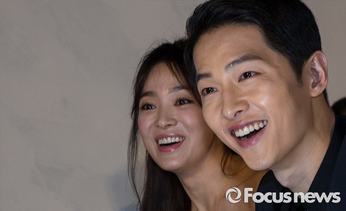 (서울=포커스뉴스) 3일 오후 서울 동대문구 경희대학교 평화의전당에서 열린 '2016 백상예술대상'에 참석한 배우 송중기-송혜교가 레드카펫을 밟고 있다.
