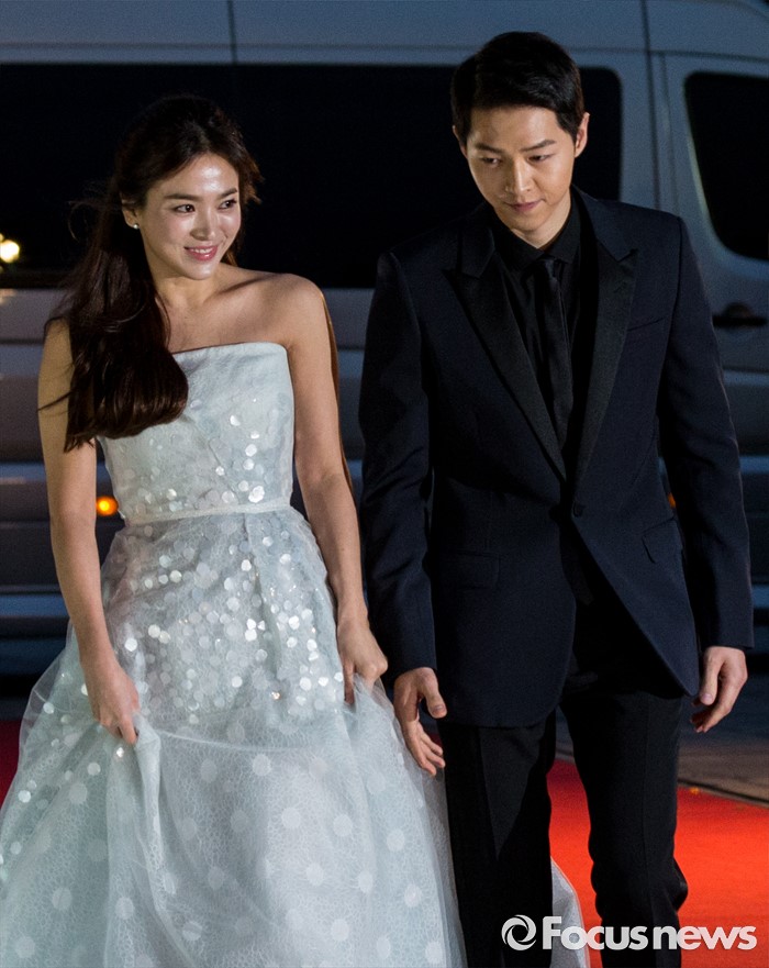 (서울=포커스뉴스) 3일 오후 서울 동대문구 경희대학교 평화의전당에서 열린 '2016 백상예술대상'에 참석한 배우 송중기-송혜교가 레드카펫을 밟고 있다.