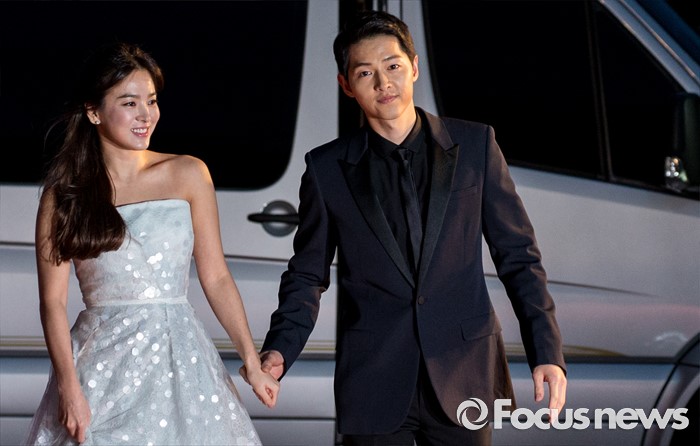 (서울=포커스뉴스) 3일 오후 서울 동대문구 경희대학교 평화의전당에서 열린 '2016 백상예술대상'에 참석한 배우 송중기-송혜교가 레드카펫을 밟고 있다.