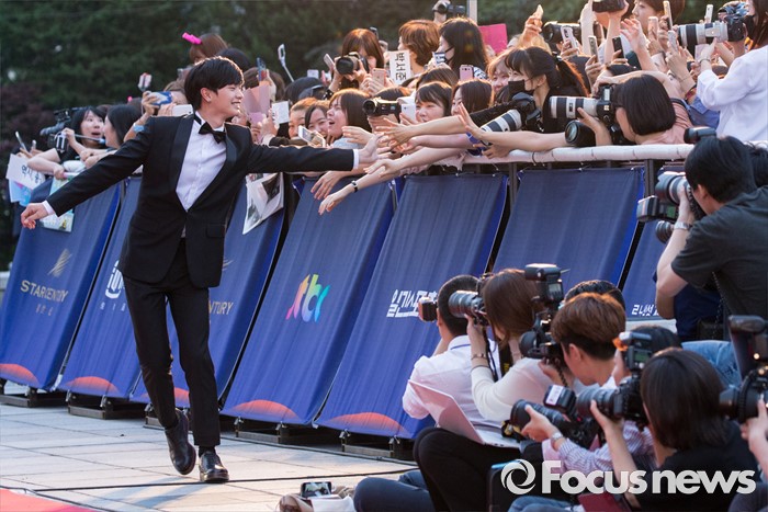 이서울=포커스뉴스) 3일 오후 서울 동대문구 경희대학교 평화의전당에서 열린 '2016 백상예술대상'에 참석한 그룹 비투비의 육성재가레드카펫을 밟고 있다.