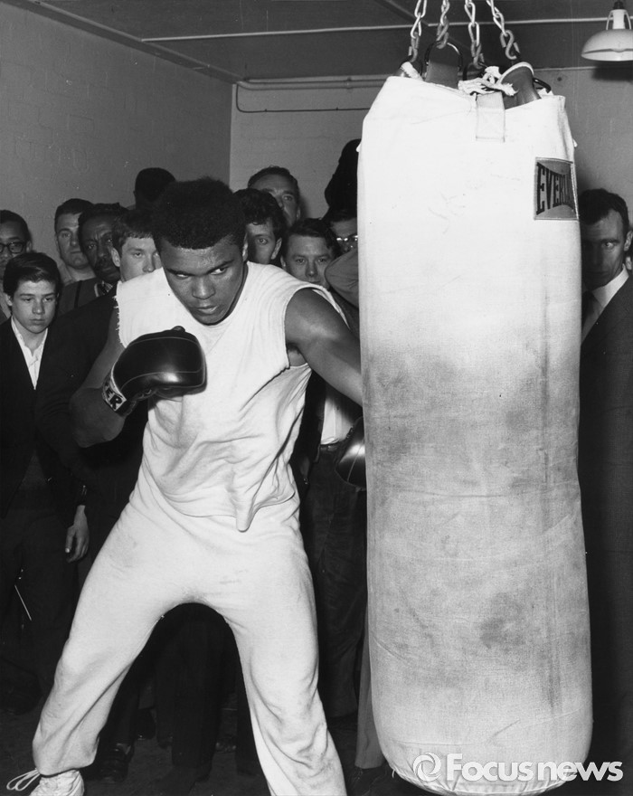 11th May 1966:American World Heavyweight boxing champion Muhammad Ali, born Cassius Marcellus Clay Jnr training at the Royal Artillery Gymnasium, London for his upcoming fight against Britain's Henry Cooper.(Photo by George Freston/Fox Photos/Getty Images)