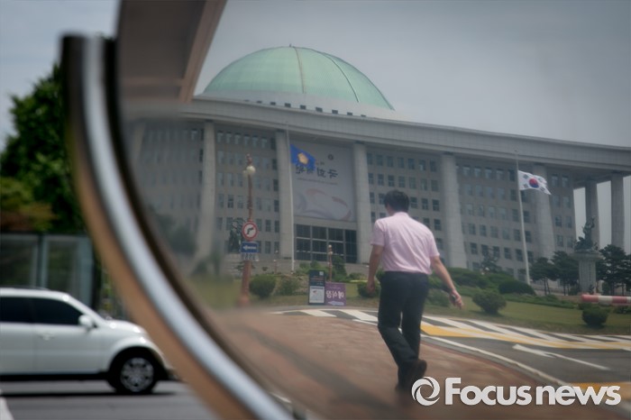 (서울=포커스뉴스) 20대 국회 원구성 법정 시한을 하루 앞둔 6일 오후 서울 여의도 국회 정문에 세워진 안내표지판에 본청 모습이 보이고 있다.