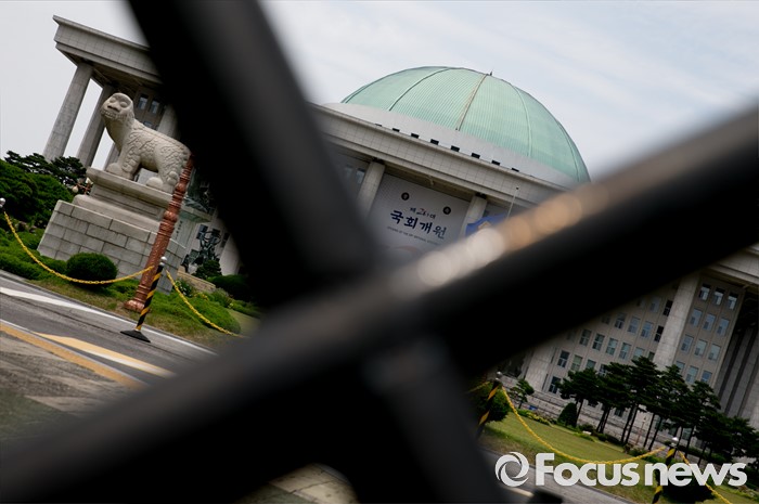(서울=포커스뉴스) 20대 국회 원구성 법정 시한을 하루 앞두고 여야 공방이 이어지고 있는 6일 오후 서울 여의도 국회 앞 시설물 사이로 본청이 보이고 있다.
