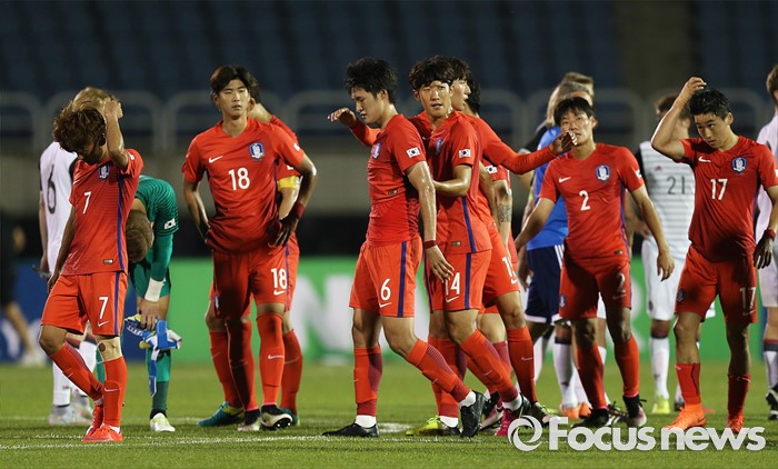 (부천=포커스뉴스) 6일 오후 경기 부천종합운동장에서 열린 2016 4개국 올림픽국가대표 축구대회 대한민국과 덴마크의 경기에서 양팀 선수들이 경기가 끝난 후 격려하고 있다.