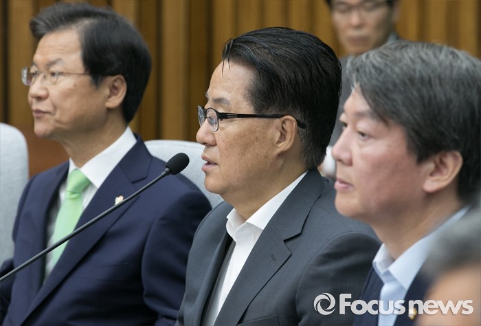 (서울=포커스뉴스) 7일 오전 서울 여의도 국회에서 열린 국민의당 의원총회에 참석한 박지원(가운데) 원내대표가 발언하고 있다.