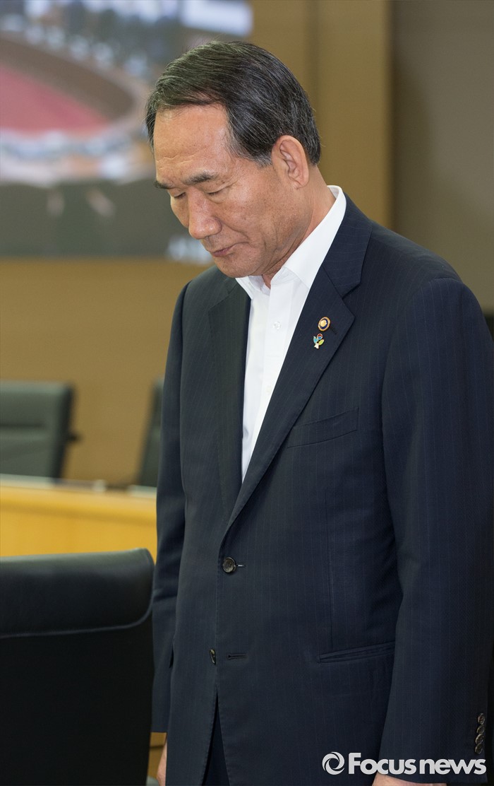 (세종=포커스뉴스) 박승춘 국가보훈처장이 7일 오전 세종시 정부세종청사 국무회의장에서 열린 서울-세종 영상 국무회의에서 순국선열에 대한 묵념을 하고 있다.