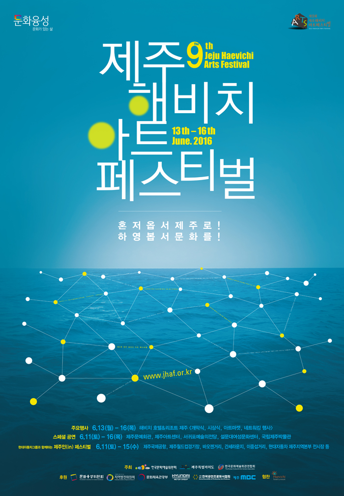 행사와 관련한 자세한 내용은 제주 해비치 아트 페스티벌 공식 홈페이지(www.jhaf.or.kr)에서 확인할 수 있다.오는 13일부터 16일까지 해비치 호텔앤드리조트제주와 제주 주요 지역에서 '제주 해비치 아트 페스티벌'이 개최된다. 사진은 행사포스터. <사진제공=문화체육관광부>