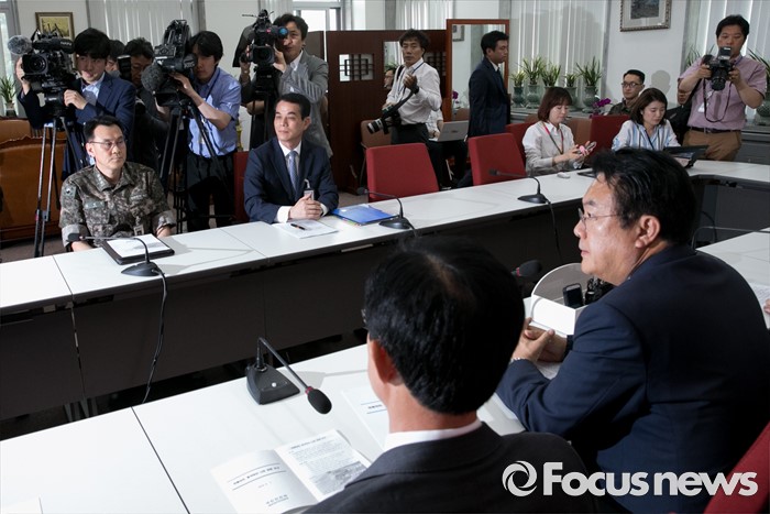 (서울=포커스뉴스) 정진석 새누리당 원내대표 등 의원들이 7일 오전 서울 여의도 국회에서 이춘재 해경조정관, 김명수 합참 작전2처장 등으로부터 연평도 어민들 중국어선 나포 관련 현안보고를 받고 있다.