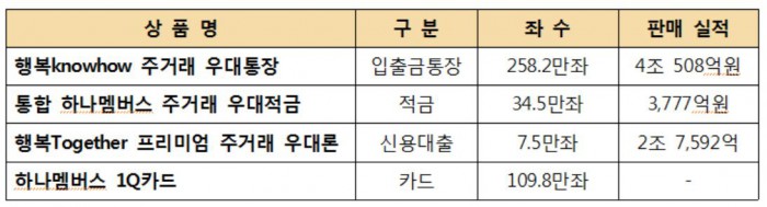 이 상품 중 행복노하우 주거래 우대통장은 지난 2일 기준으로 258만2000좌, 판매 실적 4조508억원을 기록한 것으로 알려졌다.
