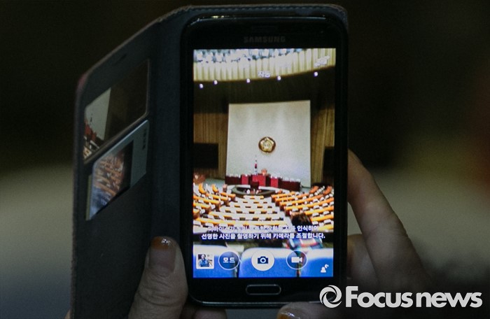 (서울=포커스뉴스) 20대 국회 원구성이 난항을 겪으며 개원식 등이 지연되고 있는 7일 오후 서울 여의도 국회 본회의장을 찾은 참관객들이 기념촬영을 하고 있다.