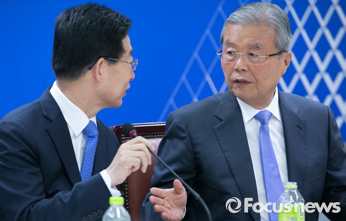 (서울=포커스뉴스) 8일 오전 서울 여의도 민주정책연구원에서 '건강보험 부과체계 개편 방안' 주제로 열린 사회경제포럼에 참석한 김종인(오른쪽) 더불어민주당 비대위 대표와 양승조 의원이 대화하고 있다.
