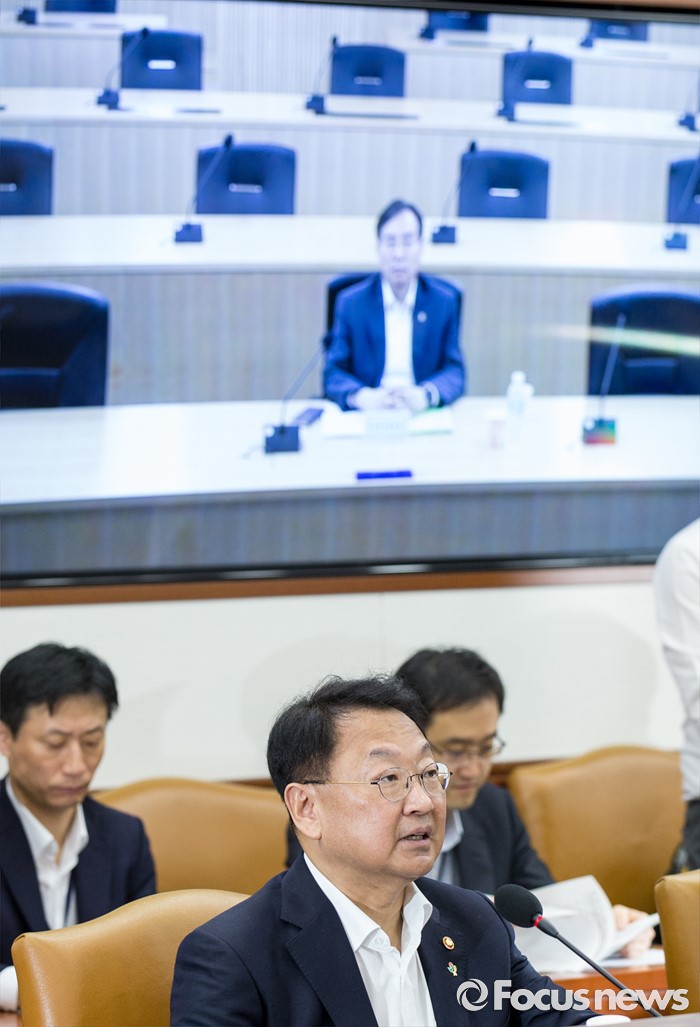 (서울=포커스뉴스) 8일 오전 서울 종로구 정부서울청사에서 열린 구조조정 관계장관회의에 참석한 유일호 경제부총리 겸 기획재정부 장관이 모두발언 하고 있다.