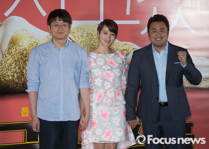 (서울=포커스뉴스) 9일 오후 서울 중구 메가박스 동대문에서 열린 영화 '굿바이 싱글' 언론시사회에 참석한 김태곤(왼쪽부터) 감독과 배우 김혜수, 마동석이 포토타임을 갖고 있다.