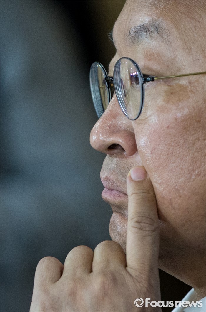 (서울=포커스뉴스) 8일 오전 서울 종로구 정부서울청사에서 유일호 부총리 겸 기획재정부 장관이 구조조정 추진현황 및 계획에 대해 발표 도중 생각에 잠겨 있다.