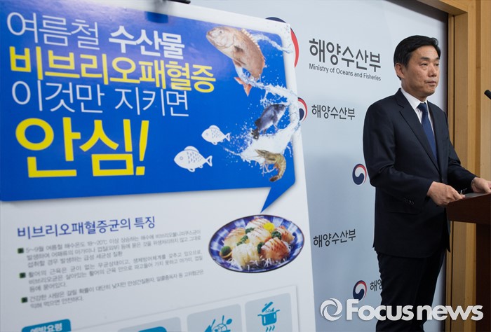 (세종=포커스뉴스) 오운열 해양수산부 어촌양식정책관이 8일 오전 세종시 정부세종청사 해수부 기자실에서 여름철 수산물 위생·안전관리 대책 관련 브리핑을 하고 있다. 해수부는 최근 폭염특보가 발령되는 등 평년보다 이른 더위에 수산물이 장염비브리오 등 세균에 오염될 가능성이 높아져 수산물 위생·안전관리 대책을 집중적으로 추진할 계획이라고 밝혔다.