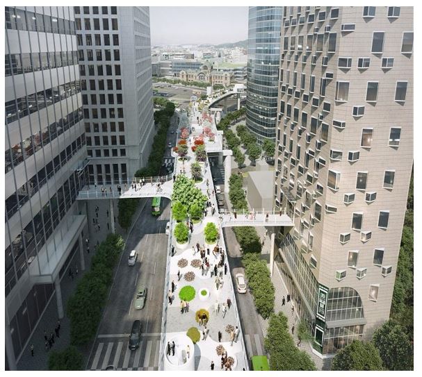 연결통로가 설치되면 대우재단빌딩은 남산공원으로 연결되고 호텔마누를 통해서는 남대문과 남대문시장 방향으로 보행길이 이어지게 된다.