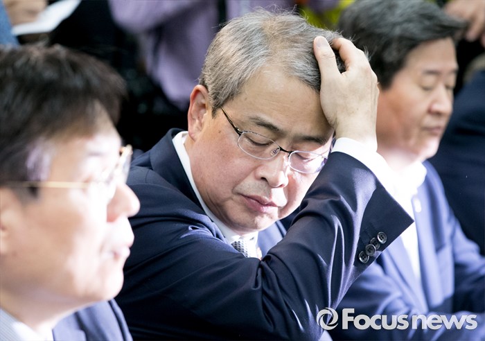 (서울=포커스뉴스) 9일 오전 서울 여의도 국회에서 열린 산업·기업 구조조정 관련 당정간담회에 참석한 임종룡(가운데) 금융위원장이 머리를 만지고 있다.