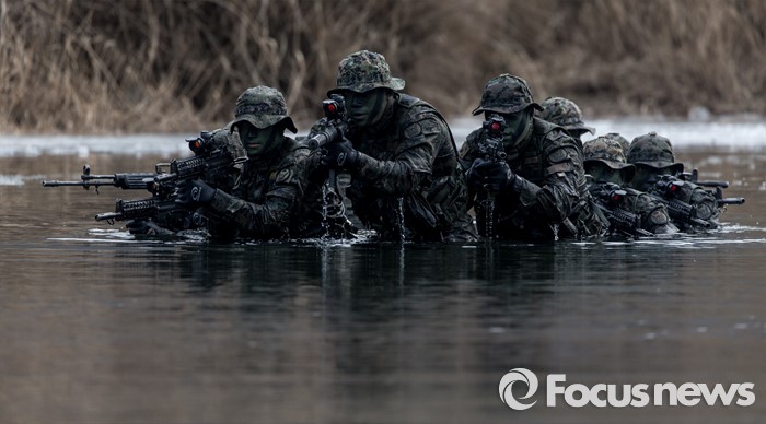 | △ 수중침투하는 흑표범 특전사 |