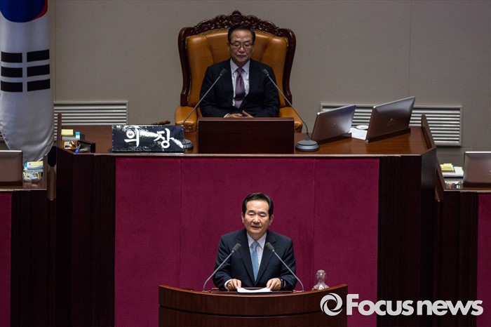 (서울=포커스뉴스) 9일 오후 서울 여의도 국회에서 열린 본회의에서 20대 국회 전반기 국회의장으로 선출된 정세균 더불어민주당 의원이 수락 연설을 하고 있다.