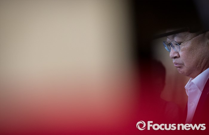 (서울=포커스뉴스) 8일 오전 서울 종로구 정부서울청사에서 유일호 부총리 겸 기획재정부 장관이 구조조정 추진현황 및 계획에 대해 발표 도중 생각에 잠겨 있다.