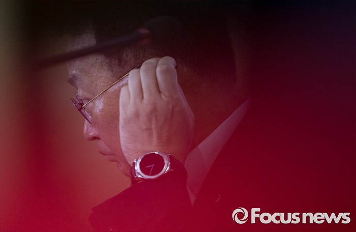 (서울=포커스뉴스) 8일 오전 서울 종로구 정부서울청사에서 유일호 부총리 겸 기획재정부 장관이 구조조정 추진현황 및 계획에 대해 발표 도중 생각에 잠겨 있다.