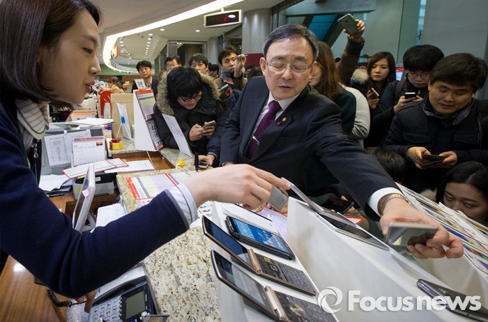 이동통신사들은 단통법 시행 이후 불법지원금 살포가 줄어들면서 덩달아 감소했던 마케팅 비용이 다시금 늘어날 것을 우려하고 있다. 이통사들은 불법지원금을 줄인 대신 데이터 중심 요금제 출시, 20% 요금할인 활성화, 멤버십 혜택 확대 등 여러 가지 요금인하 정책을 시행해 왔는데, 시장 판도가 다시 지원금 경쟁으로 회귀할 수도 있다는 것이다. 또 지원금에 많은 비용이 투입되다보면 소비자들의 편익은 줄어들고 해당 비용은 소비자에게 전가될 가능성도 높다는 지적이다. 이통업계 관계자는 “지원금이 풀리는 것이 소비자에게 마냥 좋다고 생각하는 것은 잘못된 생각”이라면서 “단통법 이후 소비자들이 누려왔던 가격인하 효과가 사라질 가능성도 있다”고 말했다.(서울=포커스뉴스) 13일 오후 서울 중구 중앙우체국 알뜰폰 판매창구를 찾은 최성준 방송통신위원장이 직원과 대화하고 있다.2016.01.13 양지웅 기자