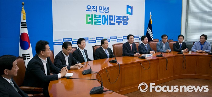 (서울=포커스뉴스) 우상호 더불어민주당 원내대표가 8일 오후 서울 여의도 국회에서 새누리당의 국회의장직을 야당이 맡고 운영 및 법사위를 여당이 맡자는 제안과 관련 4선 이상 중진 의원들과 논의를 하고 있다. 왼쪽부터 진영, 송영길, 오제세, 박병석, 문희상 의원, 우 원내대표, 이석현, 원혜영, 양승조, 안민석 의원.