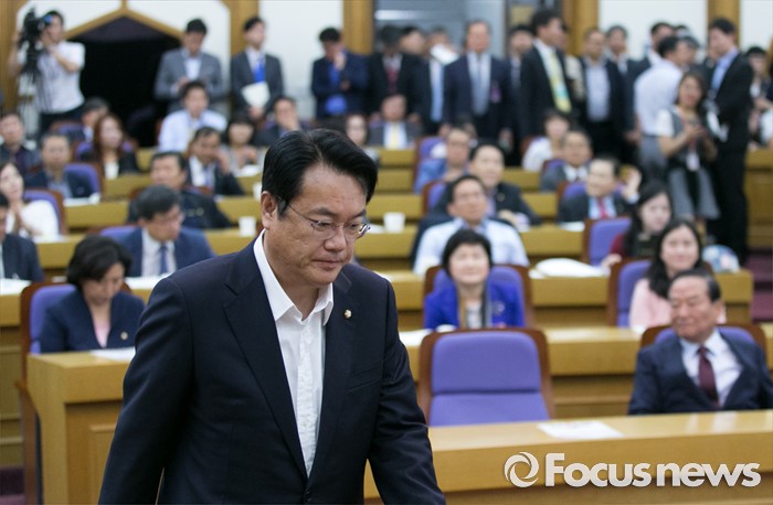 (서울=포커스뉴스) 8일 오전 서울 여의도 국회 의원회관에서 열린 국가미래전략포럼(일명 알파포럼) 창립총회 및 강연회에 참석한 정진석 새누리당 원내대표가 축사를 위해 단상으로 향하고 있다. 이날 정 원내대표와 서 전 최고위원은 국회의장직을 야당에 양보한다는 뜻을 밝혔다.