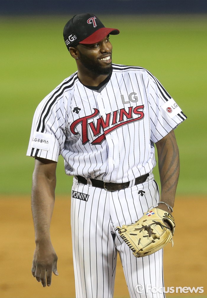 (서울=포커스뉴스) 9일 서울 잠실구장에서 열린 2016 프로야구 삼성-LG 경기에서 LG 투수 헨리 소사가 8회 1사후 안타를 맞은후 교체를 기다리며 밝은 표정으로 선수들을 바라보고 있다.