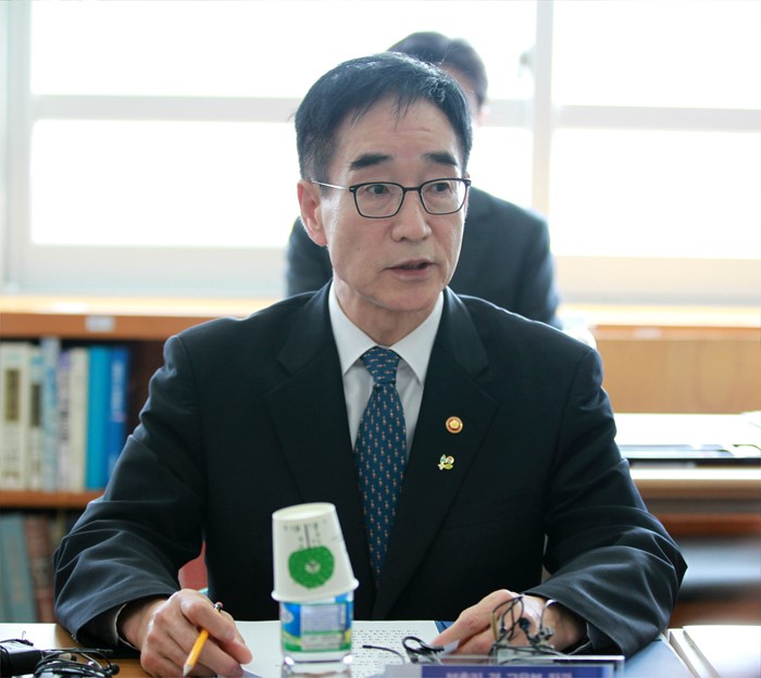 (서울=포커스뉴스) 이준식 사회부총리 겸 교육부 장관이 9일 전남 신안군 임자초등학교에서 열린 도서지역 근무자와의 간담회에서 모두발언을 하고 있다. <사진제공=교육부>