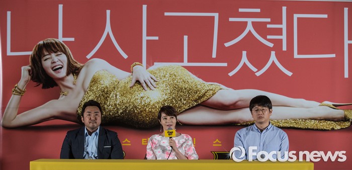 (서울=포커스뉴스) 9일 오후 서울 중구 메가박스 동대문에서 열린 영화 '굿바이 싱글' 언론시사회에 참석한 배우 김혜수(가운데)가 인사말을 하고 있다. 왼쪽부터 배우 마동석, 김혜수, 김태곤 감독.