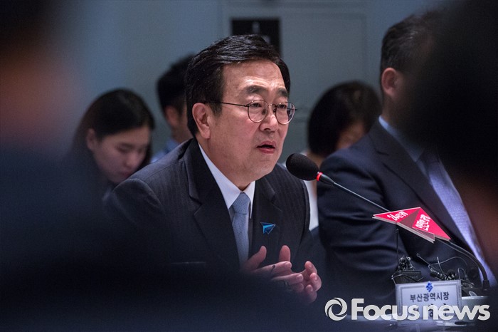 | △ 가덕신공항 추진 관련 발언하는 서병수 부산시장 |