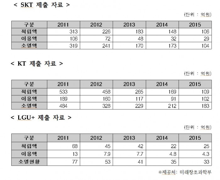 (서울=포커스뉴스) 지난 5년간 소멸된 SK텔레콤, KT, LG유플러스의 마일리지가 2682억원에 달하는 것으로 조사됐다.