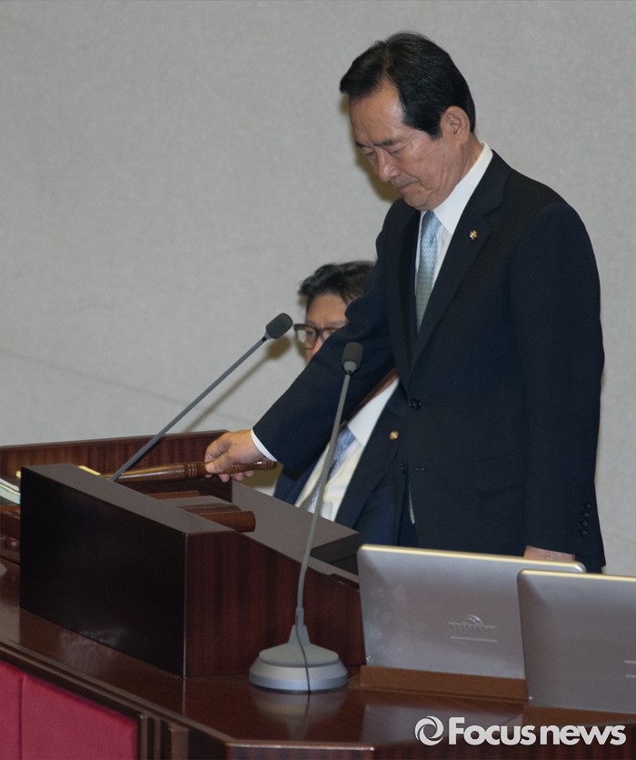 (서울=포커스뉴스) 9일 오후 서울 여의도 국회에서 열린 20대 국회 첫 본회의에 참석한 정세균 신임 국회의장이 안건 의결을 하고 있다.