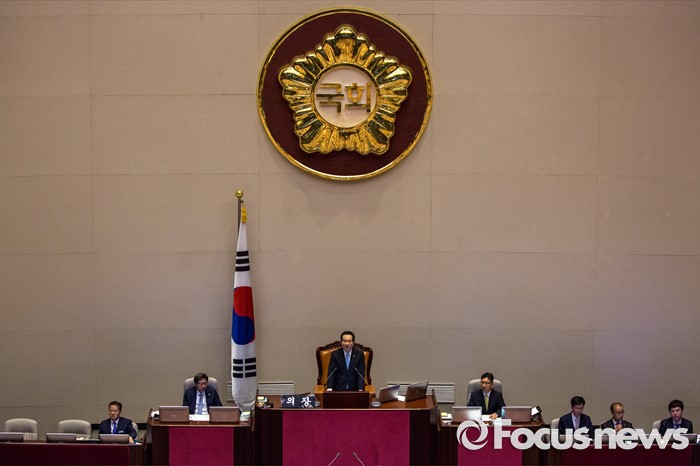 (서울=포커스뉴스) 9일 오후 서울 여의도 국회에서 열린 본회의에서 20대 국회 전반기 국회의장으로 선출된 정세균 더불어민주당 의원이 수락 연설을 마친 뒤 국회부의장 선거 진행을 하고 있다.
