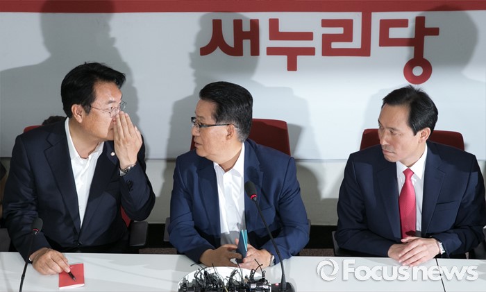 (서울=포커스뉴스) 8일 오후 서울 여의도 국회 새누리당 원내대표실에서 20대 국회 원구성 협상 등을 위한 3당 원내지도부 회동에 참석한 의원들이 논의하고 있다. 이날 여야 3당은 20대 국회 원구성에 합의했다. 왼쪽부터 정진석 새누리당 원내대표, 박지원 국민의당 원내대표, 우상호 더불어민주당 원내대표.