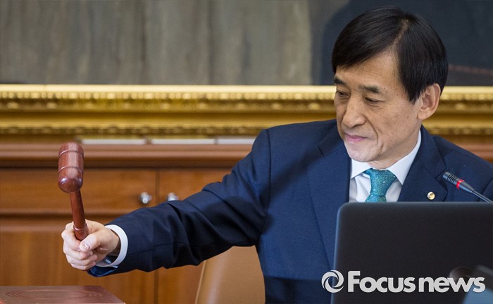 총재이 주 열(서울=포커스뉴스) 9일 오전 서울 중구 남대문로 한국은행 본관에서 열린 금융통화위원회 본회의에 참석한 이주열 한국은행 총재가 개회를 알리는 의사봉을 두드리고 있다. 2016.06.09 양지웅 기자