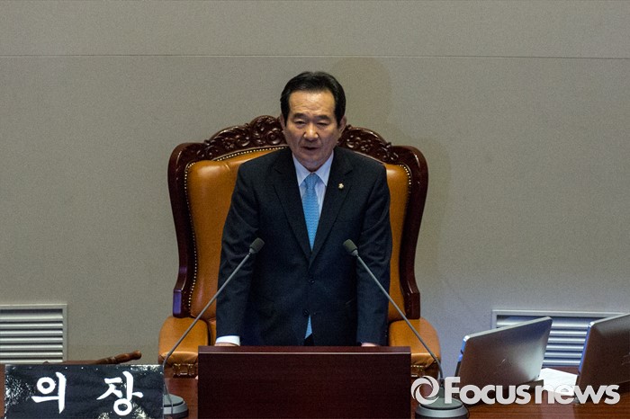 정세균 국회의장은 이날 동료 의원들의 기립 인사를 받으며 단상에 올라 "20대 총선 민심으로 만들어진 여소야대 다당제 체제 하에서 의장에게 부여된 막중한 소임에 최선을 다해 국민에게 힘이 되는 국회를 만드는데 제 모든 역량을 바치겠다"고 했다.